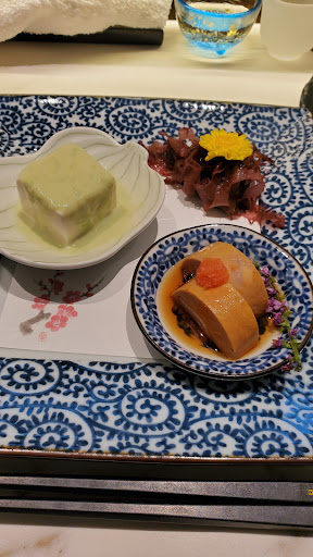 前菜 一共有三款小吃提供,分別是黃金番薯,冰頭漬和鮟鱇鱼肝。師傅表示要先吃黃金番薯,然後吃鮟鱇魚肝,最後才吃冰頭漬。