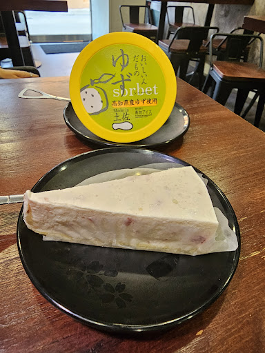 甜品:練乳草莓生芝士蛋糕,高知縣柚子雪葩