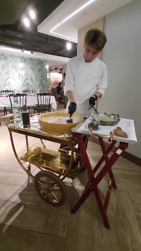 Live homemade pasta The pasta was made fresh on the spot, cooked to order. Diners could choose their own ingredients and sauces, adding a personalized touch that felt quite refreshing. The cheese truffle pasta was prepared on a large cheese wheel, flamed with wine, and then mixed with freshly cooked pasta. It was topped with slices of truffle, making it not only Instagram-ready but also filled with a robust truffle aroma. I opted for the Penne of the day, which came with crab meat, tomatoes, mushrooms, and asparagus. The pasta had a slightly chewy texture, while the crab meat was exceptionally fresh and sweet. The tomatoes enhanced the overall freshness, and the mushrooms and asparagus were flavorful and crisp.