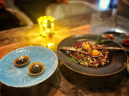 Here is a hidden romantic French-style fine dining restaurant in busy Causeway Bay. Their Amis Anniversary Menu ($888/person) offers a 4-course meal that's perfect for a special occasion. Start with a warm homemade sourdough baguette and flavored butter. The appetizers include a refreshing Spanish Cherry Tomato Sorbet, a tasty Russian Caviar Bacon Potato Ball, and a cute Foie Gras Pistachio Stick. The Hokkaido Uni Cup Lily Blossom Mousse is a visual delight with sea urchin, lily mousse, and lobster soup jelly. Enjoy the silky Cauliflower Velouté Razor Clam and the delicious Hokkaido Scallop Aglio E Olio. The Kagoshima Wagyu Beef is cooked to perfection, and the Chef's Mont Blanc with homemade vanilla ice cream is a sweet ending. Don't miss the Petit Fours! Drinks are no included, but there have many international winning wine the you can pair with each dish. It's a romantic and memorable dining experience with...