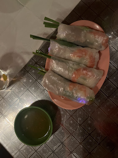 -Prawn Goi Cuon It comprised prawns, rice paper, rice vermicelli, fresh herbs, cucumbers, pickles and chives. The Vietnamese spring roll were substantial and had an intense aroma. The rice paper had a pleasantly chewy texture.