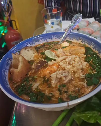 -Banh Bo Nuong My favourite dish of the night. The Vietnamese baked honeycomb cake was topped with sago, coconut cream, sesame seed and peanut. It was creamy and the sweetness was on point. The sago enhanced the texture of the dessert. . Their soup noodles rotated daily, so u may want to do some research before going there. . Although the resto has two storeys, it's quite small and often has long queues. It is better to book in advance to prevent waiting. . The resto is decorated in Vietnamese street style and plays loud music, creating a rustic atmosphere. The neon lights were pretty as well. Special thanks to the staff who recommended the Banh Bo Nuong, which was a...