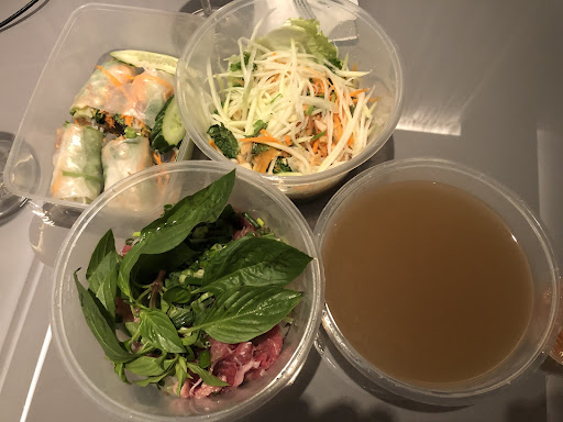 Ordered from Bun Cha recently had food delivered in 33 minutes. Food was packaged for delivery rather well but a lot of use of plastic. Raw beef pho was pretty good. The beef was very fatty and stringy but the broth was fine and the rest of the ingredients made this a good bowl. The veggie rolls in rice paper wrap were ok. Probably most enjoyed was green papaya salad, with was fresh and vibrant in flavours.