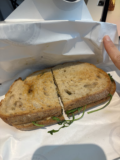 SHE DID NOT WASH HER HANDS, took the sourdough slices with her bare hands, raw lettuce, and dug her fingers into the shredded cheese bowl and sprinkled the cheese in my sandwich (didn’t even use a spoon). after sandwich was assembled and placed in the hot press, she immediately went back to touching her phone. after awhile, she took out my sandwich from the press (with bare hands again and not washing after touching her phone). Imagine going back and forth making a customer’s sandwich with your bare hands and touching your phone. She then wrapped it and passed it to me in a very unhappy manner.