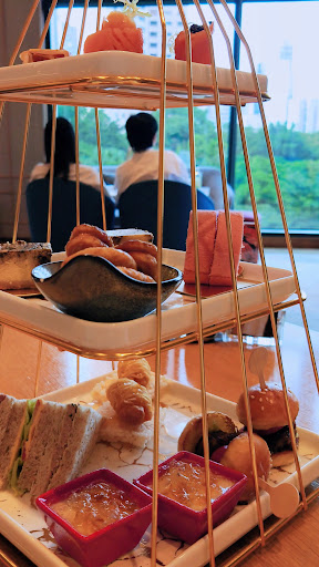 The tea set includes typical items such as macarons and sandwiches. Interestingly, there are also some local Chinese dishes. While the taste itself doesn't quite warrant a second visit, the view is absolutely amazing. It's a fantastic spot if you have some free time and want to experience something new.