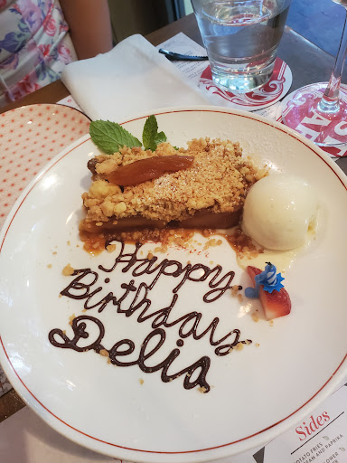 The staff came over to my wife and wished her a happy birthday once our dessert arrived, an apple crumble with vanilla ice cream. They even wrote birthday wishes on the dessert place!