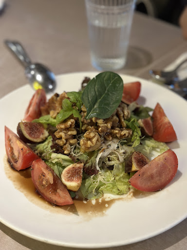 🥣 Gratinée French Onion Soup A soul-warming start. The broth is rich and deeply caramelized, with onions that melt into velvet. The gratinée topping—golden, bubbling cheese over a crisp olive oil-brushed crouton—adds just the right indulgence without heaviness. It’s comfort in a bowl, minus the guilt. 🥗 Fig and Walnut Salad A masterclass in balance. Sweet figs, earthy walnuts, and peppery greens are dressed in a delicate olive oil vinaigrette that sings with acidity and fragrance. It’s the kind of salad that feels like a main event, not an afterthought. 🍷 Slow-Cooked Wagyu Beef Cheek in Red Wine with Baguette This dish is a quiet triumph. The wagyu cheek is impossibly tender, having surrendered to hours of slow cooking in a red wine reduction that’s both bold and nuanced. The baguette—crisp outside, pillowy inside—is perfect for mopping up every last drop. It’s rustic French elegance, reimagined for the health-conscious palate. 🍝 Spaghetti with Porcini and Garlic A vegetarian delight that doesn’t skimp on flavor. The porcini mushrooms are meaty and aromatic, their umami amplified by slow-sautéed garlic in olive oil. The pasta is al dente and generously coated, yet never greasy. It’s a dish that whispers rather than shouts, and its restraint is its strength. 🥧 Apple Pie with Ice Cream Here’s where the restaurant truly understands its audience. The pie is flaky and fragrant, with apples that retain a gentle bite. The sweetness is subtle—just enough to satisfy, never enough to overwhelm. Paired with a scoop of creamy vanilla ice cream, it’s the kind of dessert that earns the coveted local compliment: “not too sweet.” And yes, it’s every bit as good as...