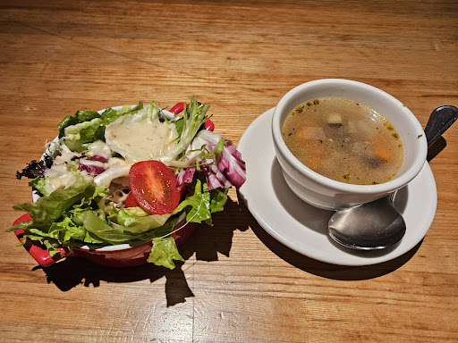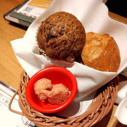3.5 stars Venue: Decorated in American style. There is a small toy train running around the ceiling of the bar area. Different types of seatings - bar tables, high table, with table cloth. A bit packed. Soft lighting --- 7.4/10 Service: very busy during rush hours. Water was given after to be seated. Forgot giving us a basket of bread. F&B: Bilingual menu with subtle food photos. Weekday Lunch Set (11:30-17:00 Monday to Friday except public holiday) including 1 main served with a drink + Salad /Soup + Bread + Muffin. Be careful. It's misleading here. Only 1 basket of bread and "1" muffin are available to 1 table of 1-4. As their policy, they only give 2 muffin when 5 people or more. Many customers have asked for the muffins. That doesn't match the description of the menu. They know it and give one more muffin if Customers ask for muffins. Normal portion. Normal portion. Resonable prices (+10% service charge). Bread & Muffin, served strawberry butter ? --- 7/10 Coffee or Tea: large portion. Average. 7/10 Salad: average Soup: chicken and veggies broth. Crab Cake Salad, $188: large portion of salad. A lot of mayo. Crab cake was good. --- 7.5/10 Slow-cooked Baby Pork Rib, $168: served with a small pot of coleslaw (pineapple and cabbage, watery) and potato chips (but not crispy). Pork was tender. --- 7/10te staff. Better to explain or brief introduction before dishes are...