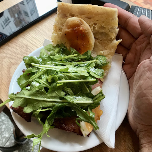 The staffs comprehension of English also did not coincide with their full English menu and clientele, making it awkward to order. Lucky you can point to the menu because the staff at the till could not understand prosciutto and focaccia. I understand that you cannot expect people to be fluent in English however they should at least...