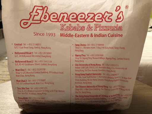 Read moreEbeneezer’s Kebabs & Pizzeria is a Halal certified Middle Eastern and Indian chain of restaurants in Hongkong. It was established in 1993 and serves moderate range of Kebabs and Pizzas, plus Indian vegetarian and non-vegetarian dishes. It has 25 outlets throughout Hong Kong.