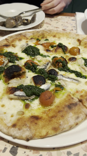Read moreCaught off-guard by sheer interest from a red logo plastered on the wall, I approached and stepped into what felt like a Wes Anderson movie set (think Royal Tenenbaums, but in Italy ha). Seriously impressed by the level of detail that went into the finessing of interiors here! And they serve pizza? Damn right you can count me in...So my partner and I went over following a film at the cinema for a dinner. William took care of us from the get-go, and small talk alone made us feel right at ease like we're part of the scene at play here. Fantastic lad by the way 👍 Got the menus, and no doubt we're thinking wine. So we get reading, and we nearly start wetting ourselves! The descriptions were hilarious, and no doubt Isa and I appreciated the non-pretentious approach to grape drink based solely on the staff experience. LOVE it. Carafe of De Vinosalvo it was 🍷.