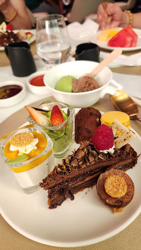 The culinary offerings present a mixed performance. The chilled seafood selection delivers standard quality with fresh oysters being the clear standout, offering perfect briny sweetness. However, the crab legs disappoint with excessive saltiness. Mains like the grilled ribeye steak are competently prepared to requested doneness and the flavor is quite good. The dessert selection provides a satisfying finish with varied choices from rich chocolate creations to light fruit tarts, all well executed.