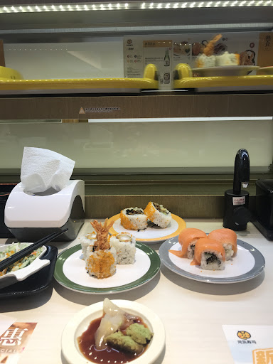 Diners pluck sushi & maki rolls from a moving conveyor belt at this Japan-based chain outpost.