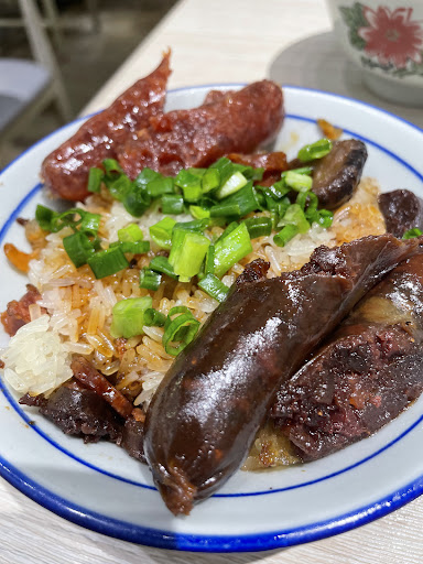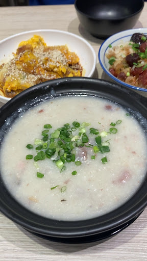 Sticky rice with preserved sausage slices & duck liver dried sausage slices (highly recommended) Rice congee with pork ribs, peanuts & dried oyster (quite good) Pan-fried rice cheung fun with dried shrimps (make sure you pay extra to add the fired egg)