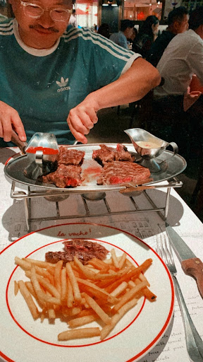 Ā Ā Ā Read moreI was curious about the name of the restaurant āLa Vacheā what it means in English so I googled it. Interestingly, āLa vacheā is a French expression that translates literally to āthe cowā but it used informally to express surprise, admiration, or disappointment, similar to Holy Cowāor āDamn!ā This really sums up our feeling and comments on the Restaurantā¦.DISAPPOINTMENT! We did not expect a French restaurant of this kind of ambience, service and food quality. First of all, the seating is extremely tight and uncomfortable. We are not heavy people and just wonder how heavy people can get around to sit in!! The music is extremely loud. When asked the waiter to adjust and tune down the music, he wasnāt too friendly or helpful and refused to do so right off the bat. People tends to raise their voice in a noisy environment and the restaurant is getting so noisy like a market place. We had to shout at each other at our table. It sounds like we are having a fight. We could not even hear the food server when he was taking the food orders. We ordered 4 rib eye steak dinners, one was rare and three were medium rare. But we found no difference in rare or medium rare. The meat was tough. We were stuffed with French fries. The fries quality is no difference than the MacDonaldās fries. No wonder they are unlimited supplied. It is completely sprinkled heavily with salt. We could not stop drinking water during the entire meal. The service is lousy. The food servers mainly walk around to serve more fries than anything else. When requested to speak to the restaurant manager to address our concerns, the food server did not send the manager to our table. No explanation provided. We did not expect a so called āFrench restaurantā of this quality of service, ambience and food quality. Price does not match our experience. Extremely...