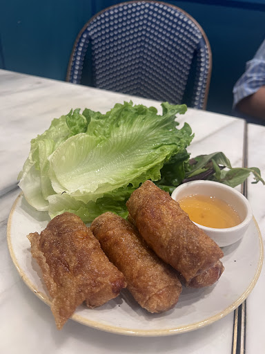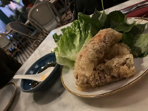 We opted for one spring roll, and two main to share, as my fd doesn’t eat beef, so we ordered pork collar with rice vermicelli, and yellow chicken with garlic bread. The portion of the yellow chicken was extremely small, I could barely find the chicken, only few pieces there 😂 and I thought it came with broken rice (I asked the server about it) so we chose the garlic bread as our side, so we could try both. But turns out there were no rice on the plate at all, we asked the staff about it and she said the rice is in the pate, which was quite invisible 😂 The chicken really literally is 雞碎咁多,I was shock coz it cost $248 🫣 And I’m a fan of garlic bread, but I couldn’t taste any garlic from this bread and it was stale … The spring roll was really good tho, and pork collar was not bad. Just don’t order the yellow chicken … is a scam 🫠🫠