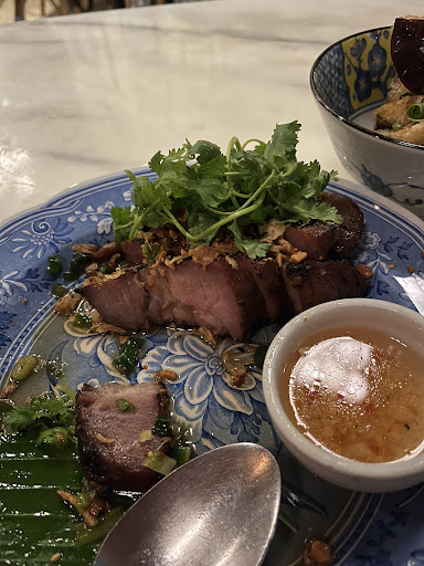In a city with unlimited opportunities to eat and explore, this gem is worth a detour. I first ate here just before Covid and the banh xeo was the best I had ever had, the crepe expansive and appealing with crispness and tenderness, and the fresh greens and herbs were as abundant as my own garden. Today I passed by the small street the restaurant is on and was flooded with fond memories of that meal. I made a reservation as soon as I got back to my nearby hotel room and found myself there a few hours later. This restaurant can hold its own with any dining establishment in the city and it may be the best Vietnamese outside the country I've eaten at. Refined but unpretentious, more expensive than most other Vietnamese restaurants, Le Garcon Saigon delivers first-rate quality and superb, balanced food. The pork collar, grilled after a long rest with a sweet, herbaceous marinade, provided a great ratio of meat and fat, and was punctuated by fresh rau ram and the best nuoc cham I've tasted. The crispy fried eggplant put most tempura to shame and managed to retain a light, crispy exterior with a soft-as-jam interior, complemented by a delicious vinegar ginger sauce. Both items were recommended by my server, who gave great descriptions of the food and steered me away from ordering too much as a solo diner. The manager came by my table and offered me a shot of rice wine as a digestif, and its clean, persistent finish rounded out the meal nicely. The music was a bit loud for my liking but the youngish crowd seemed to like it. If I'm in Hong Kong for my next wedding anniversary, this is where...