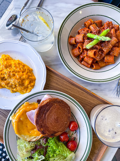 Read moreWe’ve ordered the ham and cheese breakfast with a side of scrambled egg, the pasta alla vodka from the special, Mont Blanc which is also from the special, lemon tart, a hojicha latte with oat milk and a osmanthus lemonade.
