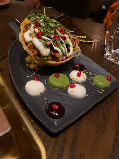 Our dining experience at this restaurant left room for improvement, as many dishes struggled with imbalanced spices and lacked the depth of flavor we anticipated. Below is a detailed breakdown of our order: Lucknowi Tokri Chaat: A pleasant start with enjoyable flavors, making it a solid choice. Iโd recommend giving it a try. 7/10 Chicken Tikka Naan: Unfortunately, this dish fell short. Compared to the exceptional Chicken Tikka & Naan at Bombay Dreams, it lacked vibrancy and appeal. Not recommended. 0/10 Goan Peri Peri Prawns: Disappointingly, the peri peri flavor missed the mark entirely. Having recently visited Goa, I found this rendition far from authentic, with only two lackluster prawns. Not worth ordering. 0/10 Baked Chettinad Samosa (Corn): The flavors were subtle and the texture overly dry, requiring the Chutney Set to make it palatable. A bit underwhelming. 5/10 Black Pepper Mushroom: This dish lacked seasoning, particularly black pepper and salt, resulting in a bland experience that was difficult to enjoy. Proceed with caution. 0/10 Hyderabadi Dal: A highlight of the meal! The tangy, well-balanced flavors were spot-on, making this a must-try. 9/10 Laal Maas: The lamb was well-cooked, but the curry was too watery and didnโt capture the authentic essence of this Rajasthani specialty, as confirmed by my friend from Rajasthan. Decent, but not memorable. 6/10 Vegetable Kofta Curry: The overpowering cashew flavor overshadowed the kofta, and the curry was excessively thick. Likely not worth ordering. 2/10 Shishrang Murgh: This dish suffered from an imbalance of spices, with an overly strong black cardamom presence that left a mildly bitter aftertaste. The addition of boiled egg yolk was puzzling and detracted from the dish. 1/10 Dessert: Mango Mastani: High expectations were unmet with this dessert. The mango felt unauthentic and lackluster, falling short of a true Mastani. 0/10 Dessert: Baked Saffron Kheer with Fennel & Pistachio Cake: The chai-flavored ice cream was decent, but the pairing of fennel-pistachio cake with kheer felt mismatched. Additionally, the kheer (served in tiny portions) lacked any discernible saffron flavor. Not recommended. 0/10 Drinks: Cappuccino: This was more milk than coffee, missing the mark for a true cappuccino. 1/10 Mint Tea: A reliable choice with refreshing flavors that didnโt disappoint. Safe to order again. 7/10