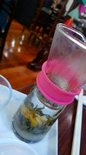 During our visit last year, we tried the Jasmine fairy-craft tea that was light and fragrant - a nice Jasmine tea to drink on its own. This is a flowering tea and you can watch the flower grow during steeping. This is a fun experience for those that have not tried before. We also tried the Fujian organic green tea which only required a short steeping time to create a light "grassy" taste; we liked this better with our food orders.