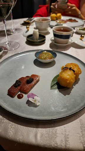 Read moreI hadn’t been back in HK for 9 years and I knew I wanted a special meal for this visit. My research led me to Man Wah, and with the Mandarin Oriental holding so many dear memories for me it seemed like the perfect choice. We were first “greeted” by the hostess who frankly seemed like she just didn’t want to be there. We were a little early so we just wanted to let her know we were be downstairs checking out the chocolates in the bakery. When we came back up she acted like she had never seen us before and asked for our name yet again. Strike 1. Our table however was perfect, and I think maybe the best one since we both had fantastic views. Our server seemed rushed but polite. We made our choices and were on our way. I went with tasting course A and my husband went a la Carte with A5 wagyu and fried rice. My courses were tasty but not knock your socks off tasty and certainly not worth the price tag. I added an extra four gras & duck dim sum which they allowed, seemed like something they get asked for a lot. Glad I did as it saved the meal. I guess we were paying for the view. I really didn’t enjoy that our lovely table was situated next to the main service station and I kept seeing and hearing the rushed staff dumping dishes, sighing with frustration and even dropping plates. I thought this was supposed to be Michelin level but the experience was far from it. Easily my main regret meal of the whole trip. Wish I could go back in time and cancel the whole experience. There are plenty of places in the city with amazing views, better food and better value. I remain...