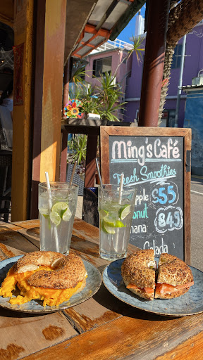 Chilling out here after the beach time was definitely refreshing. This cafe serves variety of summery drinks and coffees. We asked for their bagel sandwiches with two lime soda. Smoked salmon cream cheese bagel sandwich was as expectedly delicious. Love their bagel choice of seeded ones. Very nutty and toasted just right. Salmon wasn't the fatty nor the oily one. Capers and pickles balanced out the cream cheese richness. Whole sandwich was just right. Cream cheese and egg bagel sandwich was visually drooling. Their scramble egg was cooked to perfection. Soft but not runny. Not too salty but will be perfect if cracking more black peppers or adding more parsley. Cream cheese lightness paired so well with the smooth eggs. It was delightful. We asked for no sugar lime soda which the whole drinks was refreshing. Appreciate they used quite a lot of lime for the acidity .