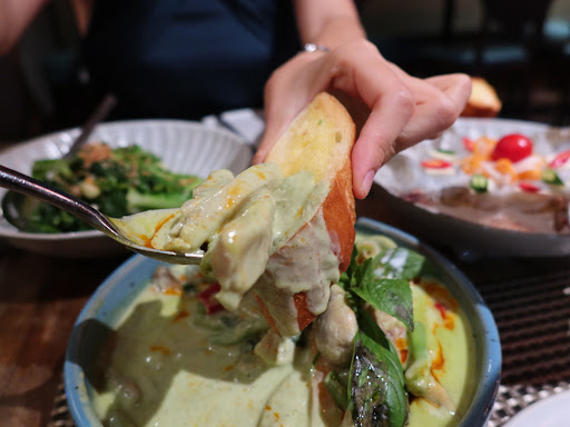 〘 Kari Kanum Pwang Nuae Poo - Thai Style Yellow Curry Crab Meat with Garlic Bread 〙HKD198 泰式黃咖喱蟹肉配蒜蓉麵包 🏆 Highest value for money: shell-free crab meat luxuriating in a lusciously mild yellow curry, rich with aromatic depth and served up with crisp garlic bread!
