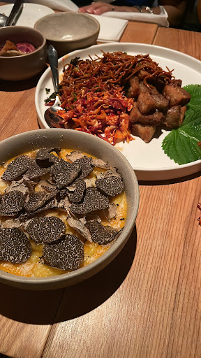 To welcome our history teacher back to HK, my friend offered us Korean dinner at this resto. . For the first round, we ordered Truffle Beef Tartare, Moyo Bossam, Bulgogi and Sea Urchin Rice.