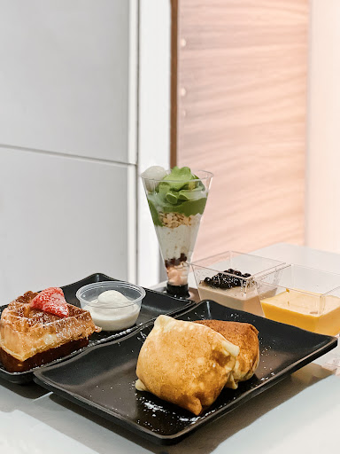 最期待既甜品叫咗榴蓮班戟、芒果布甸、珍珠伯爵茶奶凍、軟雪糕窩夫同宇冶抹茶芭菲🍦榴連班戟好濃榴連味 皮唔會太厚 餡料又夠滑 珍珠伯爵茶奶凍好香茶味 珍珠都夠煙韌💫 宇冶抹茶芭菲最出色 雪糕軟滑得黎又夠茶味🍵 仲有幾層配料 層次感十足🔥 可惜芒果糯米飯賣哂試唔到🥭😟 整體黎講甜品最出色記住留肚食🥳