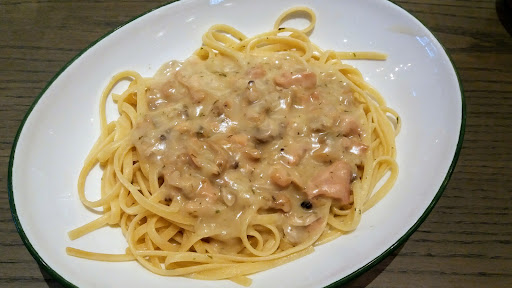 Read moreI went on Saturday at about 12, food was served within 5 mins. I ordered Norwegian smoked salmon & clams linguine in creamy dill sauce (C1), soup and iced chocolate. The linguine was good although it was served extremely quick. However, soup was a bit too salty and cold chocolate was not sweet at all... The price was high with this quality. Maybe I put too much expectation as I ate in other...