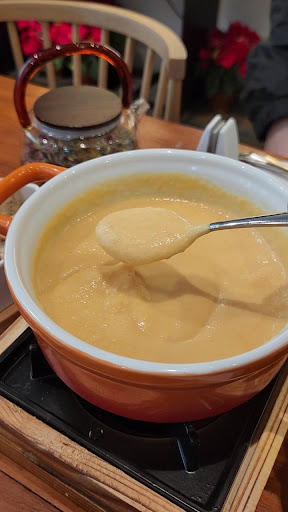 We ordered the Cheese Fondue Lunch Set for 2, and it comes with a fruit x greens salad, and 2 drinks (you can order the free drinks or add a bit of money and get other drink items for this lunch set).