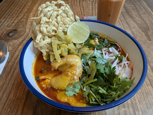 Read moreOpened by the Chef Walaiphan of Krua Walaiphan (the best Thai food in HK!) on High St nearby. Was a bit skeptical when I saw the menu which had some Vietnamese and even Filipino dishes. But it's by Walaiphan, how bad could it be? Ordered Khao Soi, and holy smokes... I had expected something simple like what's served in Northern Thailand. When it came out, I was blown away by the presentation. Best of all, the chicken was actual pieces of yellow chicken! I thought it would just be small bits of chicken. The soup was rich and thick and not salty. The entire bowl felt complex when eaten yet the flavors were simple and wholesome. Even the fried egg I added was a delight. My Thai iced tea was good, too. Friendly service. Food was served quickly (it was just me and another table which already had...