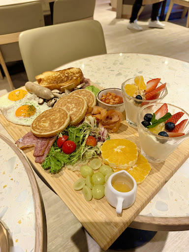 Read moreFound this gem of a restaurant while waiting for my wife to finish shopping around the corner. My son and I were looking for a cafe and this was the closest one to us so we made a short walk and discovered this cool place. This is the spot you want to take your wife or girlfriend to for some delicious breakfast/brunch dishes, great coffee options that actually pack a good punch. To top it off the prices are very nice. My son and I shared a platter which came with bacon, prosciutto, mushrooms, over easy eggs, parfait, pancakes (they are perfectly sweet on their own) and some fruit. The combo comes with two drinks for only $288 or $36 usd. We are big guys and this was more than enough to satisfy us both. I ordered the Caramel crunch late and my boy ordered the rose babychino, both tasted great. It was such a great experience that we immediately brought my wife and parents over once they finished up so they could eat lunch. They got the carbonara...
