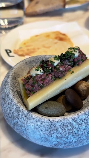 Korean Beef Tartare (+$88): Served on roasted bone marrow, with truffle sauce and caviar. Fancy but not over the top. Packed with umami.