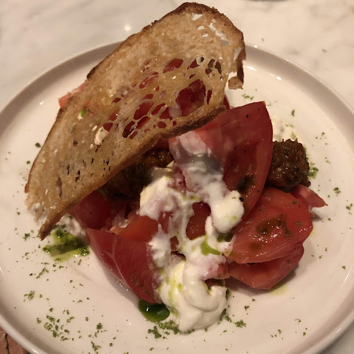 We were guessing what this starter was, and it turned out to be Burrata with heirloom tomato, beetroot, dried olives and poilane bread. We were very satisfied with the juicy heirloom tomato, yet the cheese wasn’t what we expected…