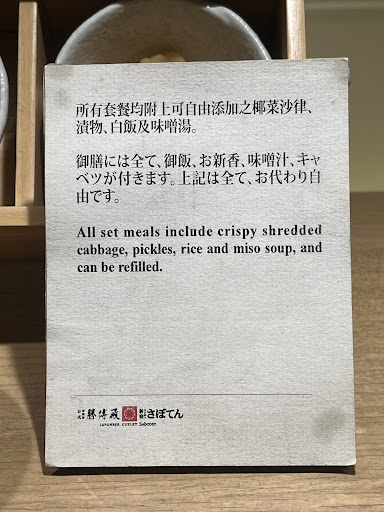 Read moreIt was pretty fire. Found this spot in the basement of Henry House - kinda gives off those hidden gem vibes2. The place has this chill Japanese aesthetic with wood beams and these lowkey comfy seats. Their tonkatsu game is straight up legit. The pork cutlet was dummy thicc with this perfect golden-brown crust that's mad crispy but not greasy at all1. The meat inside? Stupid juicy. Apparently they use some fancy 180-day aged pork that's been living its best life eating barley or whatever. The best part? They give you this whole DIY situation where you grind up your own sesame seeds with this mini mortar and pestle before mixing it with their special sauce. Kinda therapeutic ngl. Plus, they hook you up with unlimited cabbage, rice, and miso soup. Your boy was going hard on those refills, no cap. Prices aren't too wild - like 88-198 HKD for set meals. Just don't come between 3-6 PM cause they're closed, and be ready to wait cause they don't take reservations and it gets packed during lunch rush. Only L is the service can be hit or miss, and if you're vegetarian, RIP cause it's basically all pork and chicken here. But tbh, if you're coming to a tonkatsu spot looking for veggie options, that's on you fam. Solid 8/10, would smash again. Just come early to dodge the...