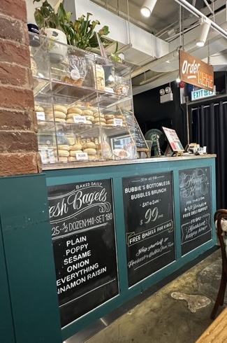 Read moreFirst visit was great- a woman who I believe was the owner was there, chatted with us, and even gave a free bowl of latke fries, which were delicious. I got a smoked salmon bagel (Foxy Loxy?). A little light on the cream cheese and salmon, and no tomato (not advertised, so I should have asked for it to be added), but the bagel was delicious. We saw that there was a bottomless brunch on the weekends, and said we would come back the following weekend to try that out. Went back the next Sunday, asked for the brunch, and we were told that doesnât exist. I pointed at the chalkboard that advertised the special, the employee went to look at it, and said âoh, we donât do that anymoreâ. Ok, fine. Ordered a Foxy Loxy and latke fries âoh, we donât have thoseâ. Ok, fine. Got the regular latkes instead and two glasses of prosecco. Noticed afterwards that the server handed a QR code card to subsequent customers asking them to write a review (but not to us- I get it though, I wouldnât have either). Too bad, because the bagels are the best in HK that...