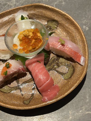 However, when the sushi arrived, we noticed there was no akagai. Upon asking the staff, we were told that it had already sold out and had been replaced with kinmedai (golden eye snapper) without notifying us. I mentioned that the staff didn’t inform us when we ordered, and another staff member offered to refund us, but we declined because we didn’t want to go through the hassle of choosing something else.