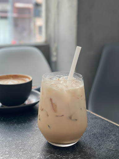 The cafe is with a modern industrial theme with concrete walls, dark-tone furniture and modern arts. With the soft sunlight radidating into the shop, it's very relaxing
