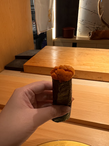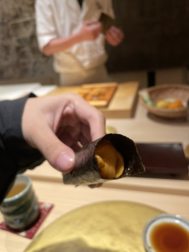 -海膽手卷,你望到佢啲海膽爆晒出嚟,你就知道呢一個係相當之足料嘅海膽手卷,望住師傅拎一板出嚟係咁加海膽。本來我仲諗緊即使冇海膽,我已經覺得呢一餐好完美,見到我最鍾意嘅海膽嘅時候真係忍唔住心心眼。好鍾意用呢一個濃郁嘅味道為呢一餐畫句號,令到我印象好深刻。