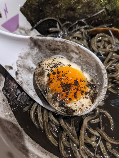 They specialize in fish broth/ seafood broth ramen. I decided to be adventurous this time and tried their Squid ink& truffle ramen. Ian got the crab & shrimp broth ramen.