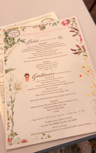 I had high tea here with 3 friends Oct 2018. We went with the vegetarian option. The food was nothing special and I wouldn't return to eat although presentation was amazing. The tea was lovely and I appreciated the location given the distance from the maddening crowd provided a relaxing place for quality time to have a decent conversation. The aesthetics are adorable and service was nice. I think we paid $300 per person which is expensive for lunch but reasonable for high tea. Please note the entrance is accessible only by walking a very sleep road and would be challenging for people in wheelchairs are...