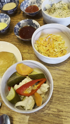 I ordered the full chicken set and dessert. The chicken was actually barely cooked through as there was blood coming out when cutting. The chicken was well seasoned but the batter was actually quite hard and thick. The chicken was quite small and there seems to be more crust than meat at the end. The sides were nice, enjoyed the pickles and cole slaw. The milk buns were cold and a bit stale, would be nice if slightly toasted. I didn’t pay too much attention to the sauce when the staff told me that he didn’t even try it himself…