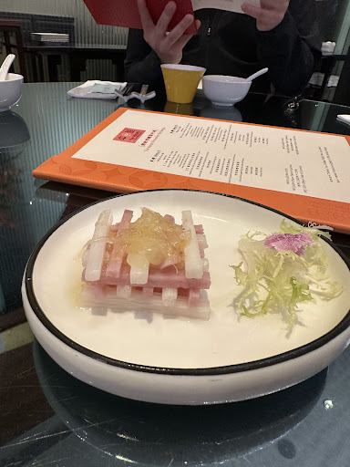 🍽 We started with some mouthwatering appetizers. The Barbecued Pork with Osmanthus Honey was sweet and succulent, with a beautiful caramelized glaze that left us craving more! Next, we enjoyed the Pressed Local Chicken with Fish Maw and Peppercorn, which was wonderfully tender and had a nice kick from the peppercorns.