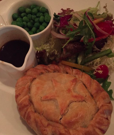 We also tried a traditional steak and onion pie. Pie crust was fine, steak and filling flavour ok, nothing special nor bad. Salad and side of peas were ok as well. This serving was less enjoyed than the fish and chips but not bad.