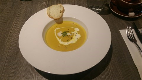 Pumpkin and Coriander Soup (⭐️⭐️⭐️⭐️💢): A rich taste of pumpkin that I could taste a lot of minced pumpkin in the soup. Besides, the soup was very creamy and had a strong butter taste. The taste of coriander wasnt strong, which was good as not all people liked that.