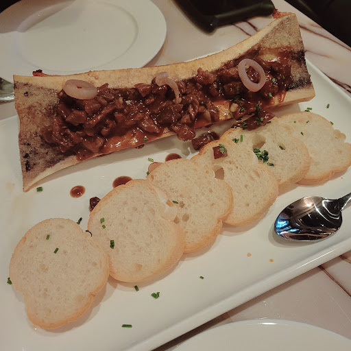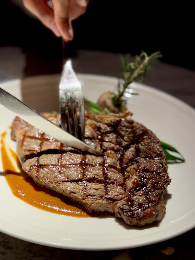 The main is Charcoal-Grilled 360-Day Grain-Fed U.S. Ribeye (Medium). The steak is beautifully seared, thick, and juicy, though the beef flavor isn’t very strong and a bit oily. Served with baked garlic, beans, and mashed potatoes, the dish is satisfying and...