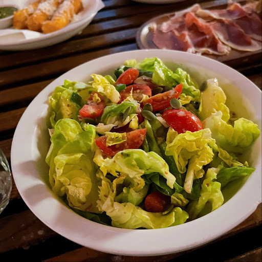 (Mixed leaves, red onions, jalapeño, pumpkin seeds, honey mustard dressing) Those baby salad leaves were soft and crunchy, very refreshing sauce with kick of jalapeño