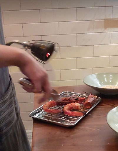 we ordered the shrimp which they will torch in front of you at the table, however the girl who came with the torch couldn't even handle the fork and spoon that's used to hold the shrimp in place for torching, and in turn broke the head and so all the juices and yummy bits were all dripped into the pan for torching, so there were none left to supposedly be mixed with the rice for you to enjoy for this dish.