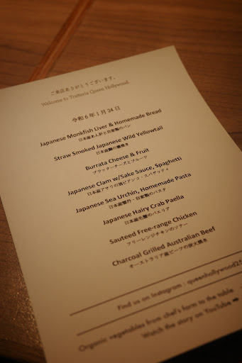 ❤ items of the menu: Japanese Hairy Crab Paella Burrata Cheese & Fruit Japanese Monkfish Liver & Homemade Bread Straw Smoked Japanese Wild Yellowtail Sauteed Free-range Chicken